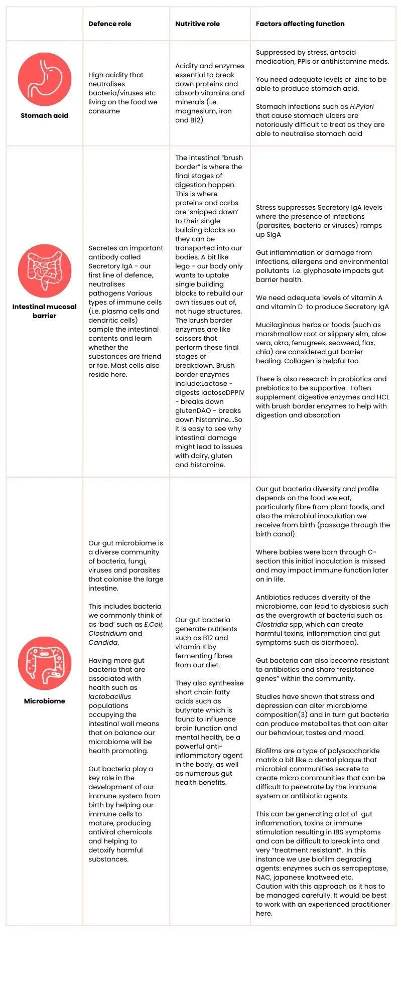 The gut hosts 70% of our immune system and is the place where our immune cells develop ‘immune tolerance’ - how to determine what is friend or foe.